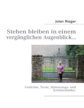 Jolan Riegers Titel: “Stehen bleiben in einem vergänglichen Augenblick“,vereint auf 192 Seiten Gedichte, Texte, Erlebnis-und Stimmungsbilder. Es ist eine zeitkritische Auseinandersetzung mit vielen aktuellen Themen, ausvielen Lebensbereichen, Erlebniswelten unseres Seins.Von tiefgreifenden psychologisch-philosophischen und Gefühlskomponenten geprägt und dominiert.Das ist verständlich, wenn man weiß, dass Jolan Rieger an der Universität zu Kölnvon 1968-1975 Psychologie und Philosophie studiert hat, dort 1975 ihr Hauptdiplom als Diplom-Psychologin gemacht hat.Jolan Rieger stellt auch interessante Bezüge zu anderen Literaten her, die vor uns lebten, uns ihr Gedankengut ihre Zukunftsvisionen hinterließen.In diesem Buch zum Beispiel:Heinrich Heine, Oscar Wilde, Honorè de Balzac, Victor Hugo, Franz Werfel, Diogenes, Stendhal, Friedrich von Nietzsche,Arthur Schopenhauer, Voltaire – unter anderen.Dies ist der 20. Gedichtband von Jolan Rieger seit 1996.Ihre bisher erschienenen Bücher sind auf den letzten Seiten dieses Gedichtbandes aufgeführt.Jolan Rieger ist außerdem neo-figurativ-expressive Malerin, Bildende Künstlerin internationalen Ranges.Für die Biennale Florenz wurde sie 2007 und 2009 von neun internationalen Museen gewählt und wiedergewählt. Homepage:http://www.jolanrieger.de