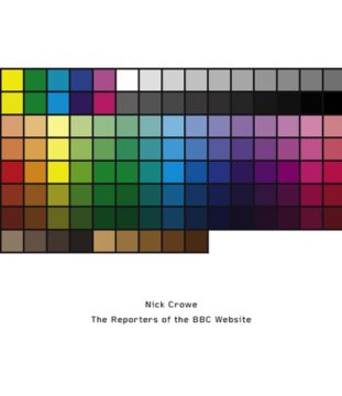 Gegen Ende des Jahres 2003 wurden die Internetseiten der BBC überarbeitet. Es gab keine radikale Neuordnung in der Gestaltung, einzig einige Überschriften und die Position einiger Logos wurde verändert. Doch begann die BBC bei dieser Umstellung auch, ein völlig neues Gestaltungselement in ihre Seiten aufzunehmen: einzelne Journalisten wurden nun im Bild vorgestellt. Die Taktik ist aus den Printmedien hinreichend bekannt: die Einbeziehung kleiner Abbildungen der Verfasser, um die Texte dadurch in der Erfahrung und als Meinung eines realen menschlichen Wesens zu verorten. Doch funktionieren diese Abbildungen auf einer Internetseite wohl anders als in der Wochenendbeilage einer Zeitung. Die Bildchen haben Teil an der Veränderlichkeit des Mediums und ihre bildhafte Information beginnt sich mit dem Bild der zu vermittelnden Nachrichten zu vermischen. Die im Original sehr kleinen Bilder sind aus einem CLUT (Colour Look-Up Table) gebildet, der aus genau 122 Einzelfarben besteht. Für das Buch werden die aus dem Netz übernommenen Abbildungen auf 600% vergrößert. Ihre Farbpalette ist also stark eingeschränkt und die Bilder grob gerastert, wodurch sich selbst im Buch der Eindruck einer digitalen Bildquelle vermittelt, auch wenn sie ins Printmedium überführt wird. Nick Crowe setzt sich schon seit längerem mit den Mechanismen der Informationsvermittlung über das Internet auseinander. “The Reporters of the BBC Web Site” ist eine neuerliche Untersuchung medialer Strategien. Nick Crowe (*1968 in Barnsley) lebt und arbeitet in Berlin und Manchester.