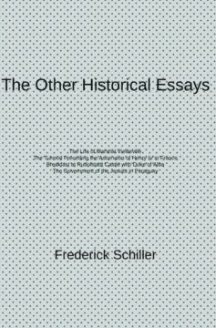 A collection of 7 historical essays by Frederick Schiller including „The Life of Marshall Vieilleville“, „The Turmoil Preceding the Ascension of Henry IV in France“, „Breakfast at Rudolstadt Castle with Duke of Alba“, „Overviea of the main state events under Frederick I“, „Overviea of the European situation during the first crusades“ and „The Government of the Jesuits in Paraguay“ and 3 others