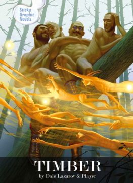 In „Timber“, a hunky third-wheel bachelor goes on a lonely hike after his partnered friends disturb his sleep by having early morning sex in the campgrounds. After completely losing his way in a magical forest, he meets an uncannily-masculine threesome of lumberjacks who take him to their cabin for rescue of a different kind … and reveal their true, devastatingly hot natures in bed! „Timber“ is published by Sticky Graphic Novels, an imprint for wordless, gay character-based, sex-positive graphic novels founded by Dale Lazarov.