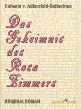 Eufemia von Adlersfeld-Ballestrem (1854 – 1941) zählte einst zu den beliebtesten deutschen Unterhaltungsschriftstellerinnen. Heute sind ihre Werke, ja selbst ihr Name fast vollständig und unverdient in Vergessenheit geraten. Im vorliegenden Kriminalroman, der im Jahre 1920 erstmals unter dem Titel DAS ROSAZIMMER erschien, gelingt es der Autorin meisterhaft, gefühlvolle Romantik mit knisternder Spannung zu vereinen und sie brilliert dabei mit einem durch die gesamte Geschichte latent durchscheinenden, erfrischenden Humor. Ganz nebenbei erfährt der Leser viel ungeahnt Interessantes über die finstere Vergangenheit venezianischer Adelspaläste. – Der Text wurde im Abentheuer Verlag behutsam modernisiert und mit der neuen Rechtschreibung versehen.