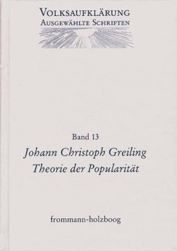 „It is popularity which brings the truth into life in a pleasing guise without harming its goodness.» What may have been desirable in general for philosophy and literature was sheer necessity for popular Enlightenment. This is why since the beginning of popular Enlightenment the question of how to make the »people» understand the philosophy of the Enlightenment was widely discussed. In his work, Greiling addresses these discussions and integrates them into what is presumably the most significant »Theory of Popularity.»
