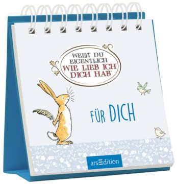 Weißt du eigentlich, wie lieb ich dich hab? Der weltbekannte Klassiker von Sam McBratney und Anita Jeram bietet hier die Bühne für ein liebevolles Dankeschön an unsere Lieblingsmenschen. In diesem Aufsteller finden sich die schönsten Zeichnungen aus »Weißt du eigentlich, wie lieb ich dich hab?« wieder, kombiniert mit liebevollen Botschaften und Zitaten zu den Themen Zusammenhalt, Liebe und Leben. Es ist ein wundervolles Geschenk für alle, die uns lieb und wichtig sind, als kleine Aufmerksamkeit zu einem bestimmten Anlass oder einfach so zwischendurch.