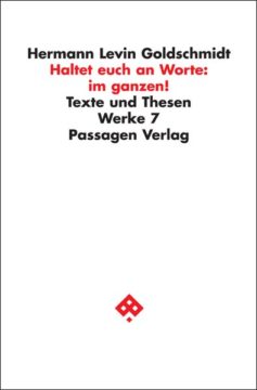 In seinen sprachphilosophischen Betrachtungen Haltet euch an Worte: im ganzen! vertieft Goldschmidt den dialogischen Ansatz, indem er Mephistos Wort “Im ganzen – haltet euch an Worte” kritisch umwendet. Goldschmidt begreift Sprache nicht als universalen Schlüssel, sondern als ein Inbeziehungsetzen, das nur im Gesamtzusammenhang von Kontexten und Funktionen, die Sprachhandlungen ausmachen, zu verstehen ist. Daneben bringt der Band auch kleinere Texte und Thesen zu Fragen der Ethik, Technik, Natur und Gesellschaft, die hier erstmals veröffentlicht werden.