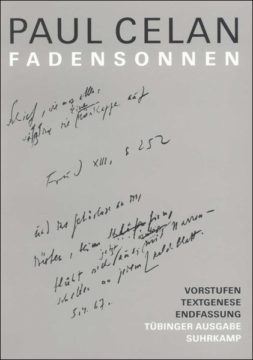 Celans Gedichtband »Fadensonnen« erschien erstmals im Oktober 1968 beim Suhrkamp Verlag in Frankfurt am Main. Die vorliegende Ausgabe enthält den publizierten Text, ergänzt um ausgewählte Zeugnisse früherer Arbeitsstadien.