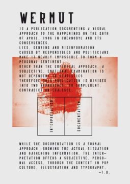 „Wermut“ dokumentiert eine visuelle Auseinandersetzung mit den Geschehnissen am 26. April 1986 in Tschernobyl, und deren folgen. Lügen & Unwissen, verbreitet durch Verantwortliche und Politiker machen es nahezu unmöglich, sich einen persönlichen Eindruck durch Informationen Dritter zu verschaffen. Im Gegensatz zu einem empirischen Ansatz, ist eine subjektive, emotionale Auseinandersetzung nicht von Statistiken abhängig. Aus diesem Grund bietet diese Publikation zwei Ansätze, die aufeinander reagieren, sich ergänzen, oder widersprechen.