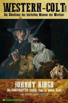 JOHNNY RINGO enthält erstmals – und exklusiv in der Reihe WESTERN-COLT SPEZIAL – die vier Romane der GUNFIGHTER-TRAIL-SAGA von Aylin Carrington in einem Band – spannende und erstklassige Western-Unterhaltung von einer Spitzen-Autorin des Genres!