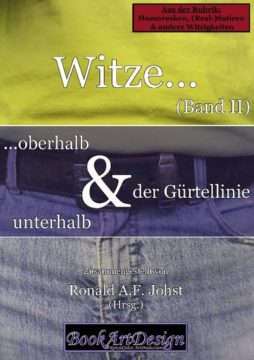 Witze sind nicht nur ein faszinierendes, unterhaltsames und kommunikatives Medium, die uns für einen kurzen Augenblick den Alltag vergessen lassen und uns ein wenig in tristen Momenten aufheitern, sie sind zudem auch noch gut für unsere Gesundheit – da sie uns herzhaft um Lachen animieren können. Das Lachen wiederum hat eine positive Auswirkung auf unser eigenes körperliches und seelisches Wohlbefinden – und ist damit eines der wahrscheinlich wirkungsvollsten, natürlichsten und bekömmlichsten Arzneimittel weltweit – und noch dazu völlig kostenlos.Nach dem ersten, sehr erfolgreichen Band von Witze… oberhalb & unterhalb der Gürtellinie (Band I), halten Sie nun, liebe Leser, den zweiten Band und den, mit viel Sorgfalt und Bedacht, ausgewählten Witzen in Ihren Händen.Eine kleine Kostprobe gefällig?Herbert bringt aus dem Urlaub eine Papageien mit und soll ihn verzollen. Der Zöllner schaut in deinen Zollbestimmungen nach und liest laut vor: „Papagei lebendig: 300,00 Euro. Papagei ausgestopft: zollfrei.“ Da krächzt der Papagei panisch aus seinem Käfig: „Mensch, Leute – macht jetzt bloß keinen scheiß!“