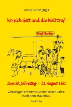 Bis Dezember 1961 waren lediglich 600 Westdeutsche tatsäch-lich in West-Berlin eingetroffen, darunter Jenny Schon. Sie blieb bis heute. Faszinierende Geschichten hat sie in diesem Buch versammelt. Schon und andere haben die Halbstadt zu dem gemacht, was sie über fast drei Jahrzehnte war: eine glitzernde Insel, Zufluchtsort, ja, ein Mythos – nicht nur für Wehrdienst-unwillige oder Aussteiger. Sie trotzten der widernatürlichen Teilung einer gewachsenen Stadt. Im November 1989 wurden sie mit der historischen Stunde belohnt und begrüßten die mutigen Ost-Berliner an der Bornholmer Straße, an der Sonnenallee und natürlich auf dem Kurfürstendamm. Berlin war wieder Berlin.