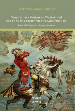 „Ich ließ das gut sein und ritt weiter, bis Nacht und Dunkelheit mich überfielen. Nirgends war ein Dorf zu hören, noch zu sehn. Das ganze Land lag unter Schnee; und ich wusste weder Weg noch Steg.“Der Baron von Münchhausen reist mitten im Winter nach Russland – seiner Meinung nach die beste Zeit für die Reise überhaupt, wohlwissend, dass es nur eine Qual wird. Doch die Abenteuer beginnen erst: Mal bindet er aus Versehen sein Pferd an eine Kirchturmspitze und wird von einem Wolf angefallen, dann wiederum trifft er auf eine Schlacht und muss sich gegenüber waschechten Bären behaupten. Gottfried August Bürger (1747–1794) lebte während der Zeit der Aufklärung und war bekannt für seine Balladen und ist vor allem für seine Bearbeitung der Münchhausen Geschichte bekannt. Er war Dichter und Unterrichtete an der Universität Göttingen über Themen wie Ästhetik und den deutschen Stil.