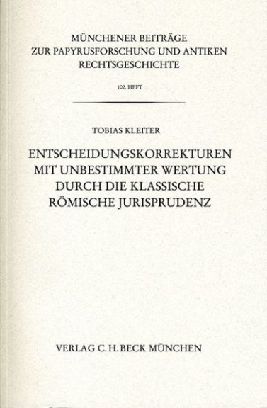 Münchener Beiträge zur Papyrusforschung Heft 102: Entscheidungskorrekturen mit unbestimmter Wertung durch die klassische römische Jurisprudenz Tobias Kleiter