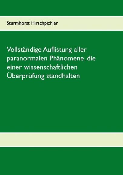 Vollständige Auflistung aller paranormalen Phänomene, die einer wissenschaftlichen Überprüfung standhalten Sturmhorst Hirschpichler