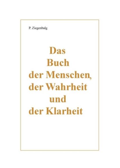 Das Buch der Menschen, der Wahrheit und der Klarheit Peter Ziegenbalg