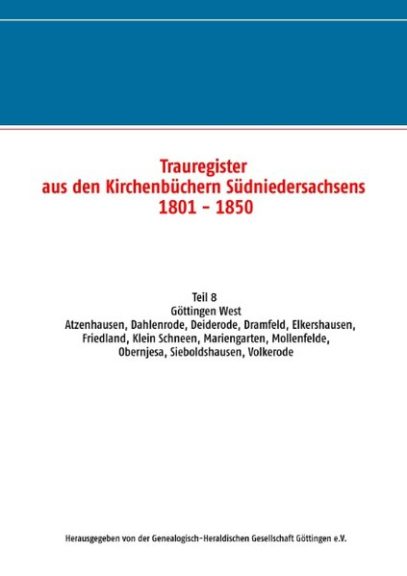 Trauregister aus den Kirchenbüchern Südniedersachsens 1801 – 1850