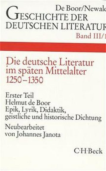 Geschichte der deutschen Literatur Bd. 3/1: Die deutsche Literatur im späten Mittelalter. Epik, Lyrik, Didaktik, geistliche und historische Dichtung (1250-1350) Johannes Janota