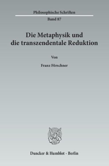 Die Metaphysik und die transzendentale Reduktion. Franz Förschner
