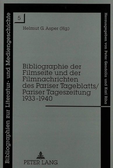 Bibliographie der Filmseite und der Filmnachrichten des Pariser Tageblatts/Pariser Tageszeitung 1933-1940 Helmut G Asper