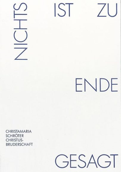 Christamaria Schröter, geboren in Breslau (Wroclaw), aufgewachsen in Schlesien und Oberfranken, lebt, malt und schreibt heute in dem evangelischen Orden der Christusbruderschaft Selbitz.