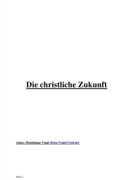 Abitur 2005/Bürokaufmann seit Januar 2014/Katholische Taufe und Firmung am 16.05.2016/ Für mehr Buchinhalt suchen Sie bitte mit einer Onlinesuche „Dominique Voigt“ auf der Internetseite von www.epubli.de oder via https://www.epubli.de/suche?q=dominique+voigt . Ich stelle Ihnen dort nahezu meine gesamten 2 Bücher kostenlos zum Lesen zur Verfügung + politische und christliche Lösungsansätze.