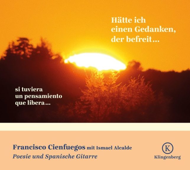 Francisco Cienfuegos, deutsch-spanischer Lyriker. In Isla Cristina, Andalusien, geboren, lebt in Deutschland. Seit über dreißig Jahren veröffentlicht er in deutscher und spanischer Sprache. Zahlreiche Auszeichnungen. In Begleitung von verschiedenen Gitarristen erreicht er bei seinen Auftritten seit jeher ein breites Publikum in Spanien und Deutschland.