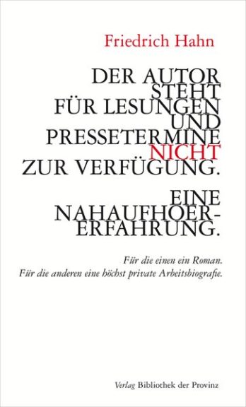 Friedrich Hahn, Waldviertler des Jahrgangs ’52, schreibt und veröffentlicht seit 1969, seit 1999 freischwebender Sprachwerker. 40 Bücher mit Lyrik, Prosa, Medienkunst sowie 20 Arbeiten für Hörfunk und Bühne (zuletzt „im rücken des schattens“, die rampe, Stuttgart 2004). Performances (u. a. im Centre George Pompidou/Paris im Rahmen der Polyphonix), Ausstellungen und Kataloge (u. a. „remakes“: Museum Moderner Kunst/Wien, „unterm strich“: Galerie Eichgraben, „allerhand hahn“: CA-Galerie im TZ).