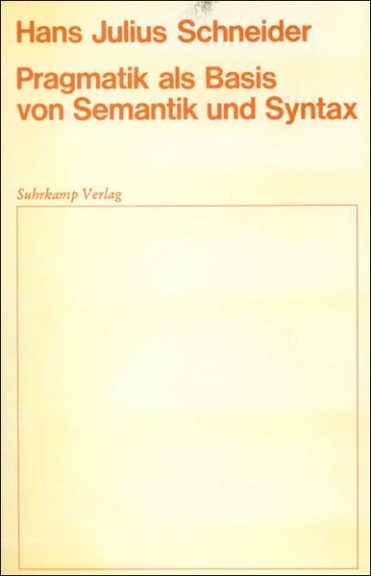 Pragmatik als Basis von Semantik und Syntax Hans Julius Schneider