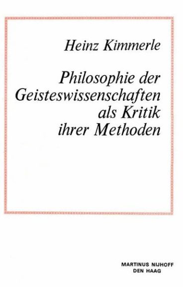 Philosophie der Geisteswissenschaften als Kritik Ihrer Methoden Heinz Kimmerle
