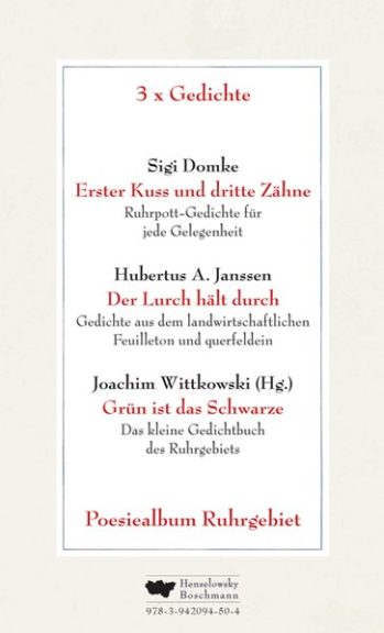 Hubertus A. Janssen ist nebenberuflich als landwirtschaftlicher Feuilletonist unterwegs. Anfangs schrieb er Limericks in Gestalt von Morgengedichten, die, so es die Lage der Dinge erforderte, schräger oder schöner ihre Blüten trugen, etwa im Kulturseitengarten der größten Regionalzeitung der Republik, der Westdeutschen Allgemeinen Zeitung. Inzwischen sind es auch Vormittags-, Nachmittags- und Abend-Gedichte, denen es gelang, sich in diesem Buch stiekum ein Plätzchen zu sichern.
