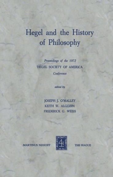 Hegel and the History of Philosophy F.G. Weiss, J.J. O'Malley, K.W. Algozin