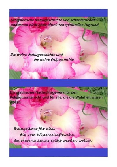 „Von der brahmanistischen Dreiheit der Einheit als unauflösliche Schöpfungstrinität jeglicher Schöpfungen, technischer, menschlicher und göttlicher, die da sind Materie, Energie und Geist“. Mit 400 Seiten, grob eingeteilt: 1.Die wahre Erdgeschichte, 2.Die wahre Naturgeschichte, 3.Die Neue Chronologie