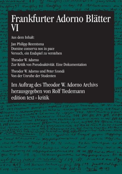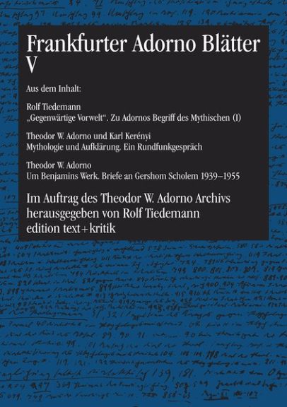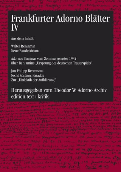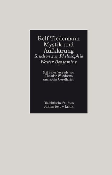 Rolf Tiedemann, geb. 1932, promovierte bei Theodor W. Adorno und Max Horkheimer mit der ersten Dissertation über Walter Benjamin. Wissenschaftlicher Mitarbeiter, später persönlicher Assistent von Adorno am Institut für Sozialforschung in Frankfurt. Herausgeber der „Gesammelten Schriften“ von Adorno und, gemeinsam mit Hermann Schweppenhäuser, von Benjamin. 1985-2002 Direktor des Theodor W. Adorno Archivs in Frankfurt. Initiator der „Nachgelassenen Schriften“ Adornos, von denen er selber sechs Bände herausgegeben hat. Ehrendoktor der Universität Hannover.